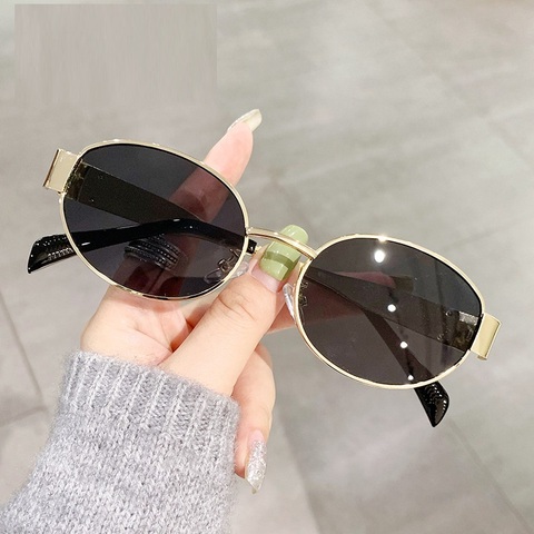 Lucky Hot Selling Fashion Vintage Gold Oval Metal Frame Sun Glasses Men Women Retro Shades Custom LOGO Designer Brand Sunglasses
